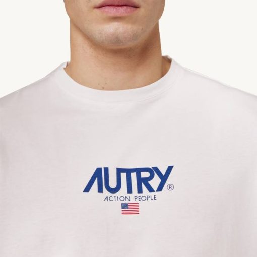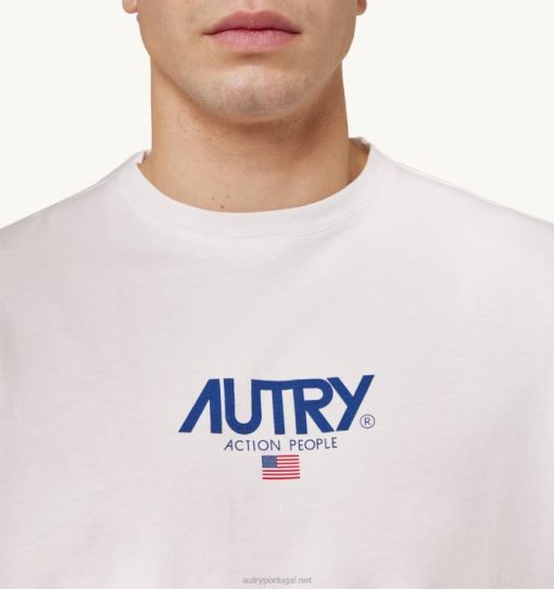 homens V68H105 Autry camiseta decote careca com logo icônico branca