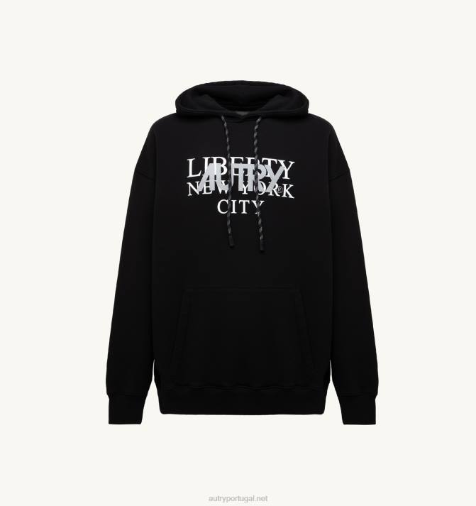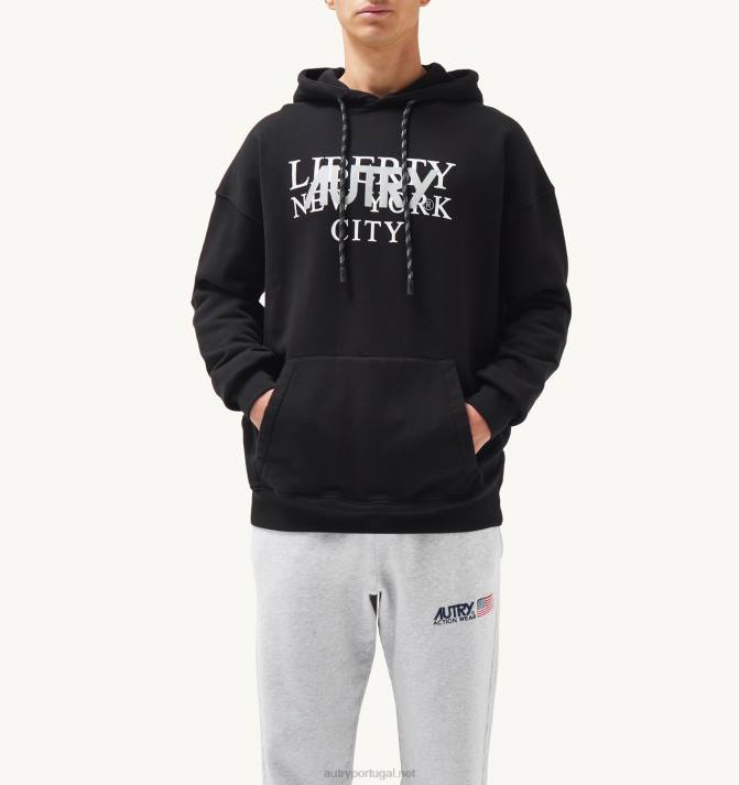 homens V68H110 Autry moletom com capuz preto com estampa liberty