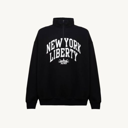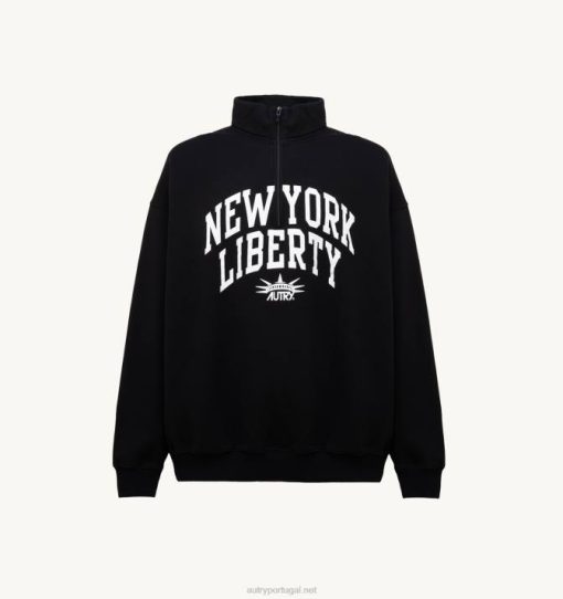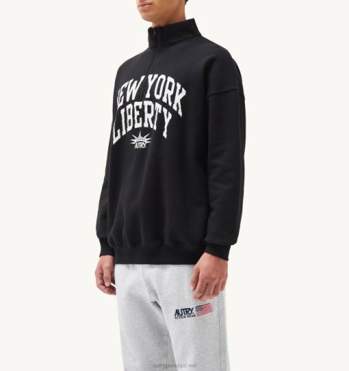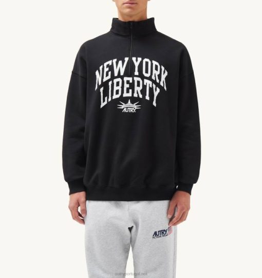 homens V68H116 Autry moletom preto com meio zíper e foto liberty