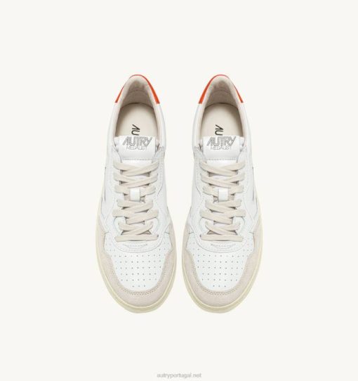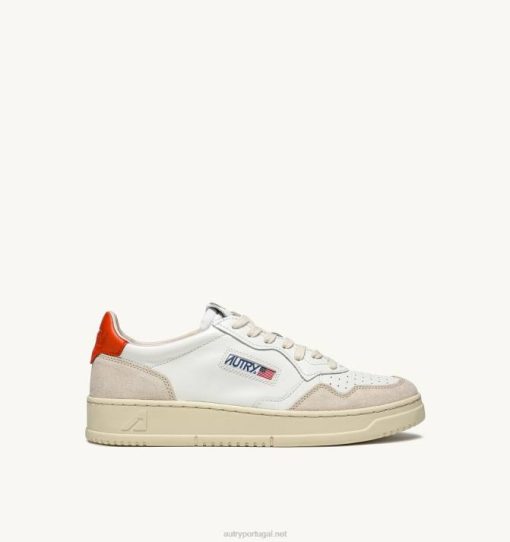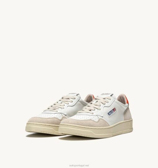 homens V68H15 Autry tênis baixo medalhista em camurça e couro branco e laranja
