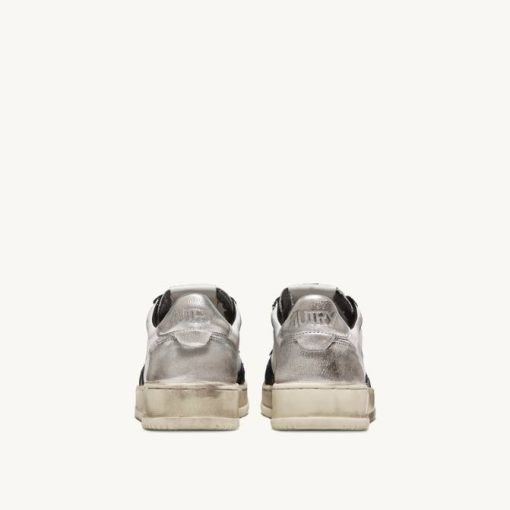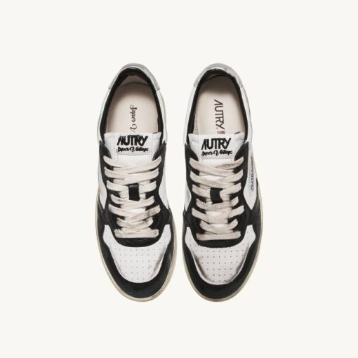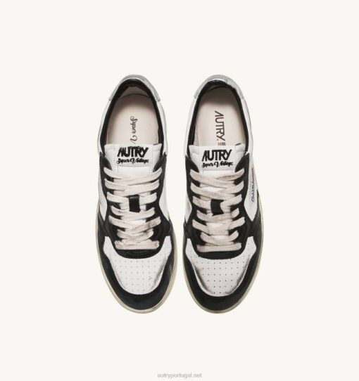 homens V68H29 Autry tênis cano baixo super vintage em couro branco preto e prata