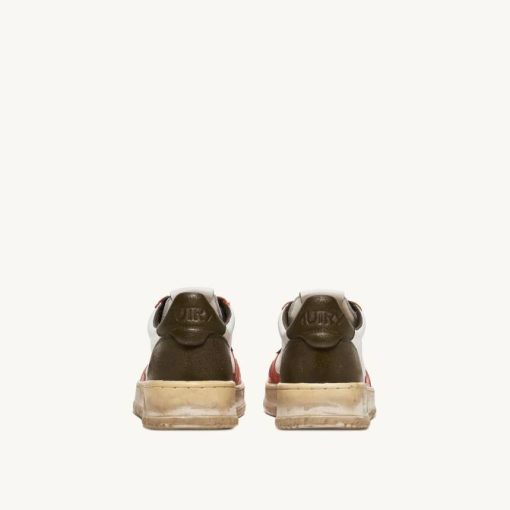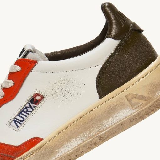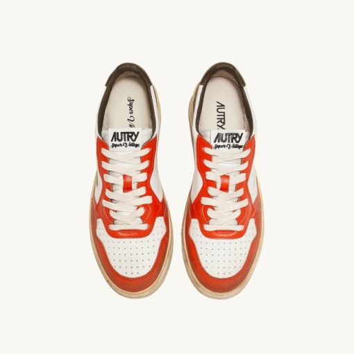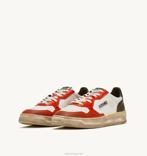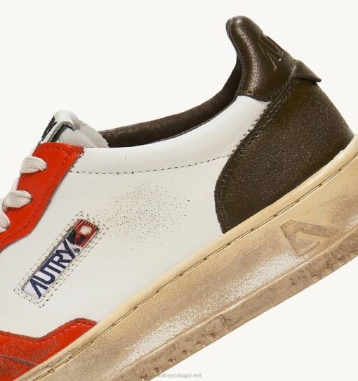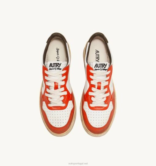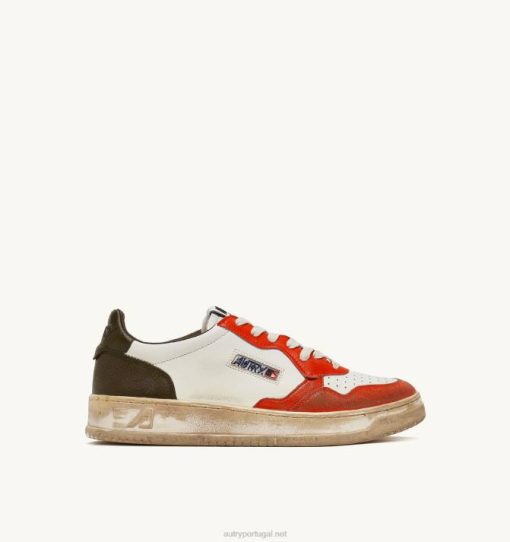 homens V68H32 Autry tênis cano baixo super vintage em couro branco laranja e tom militar