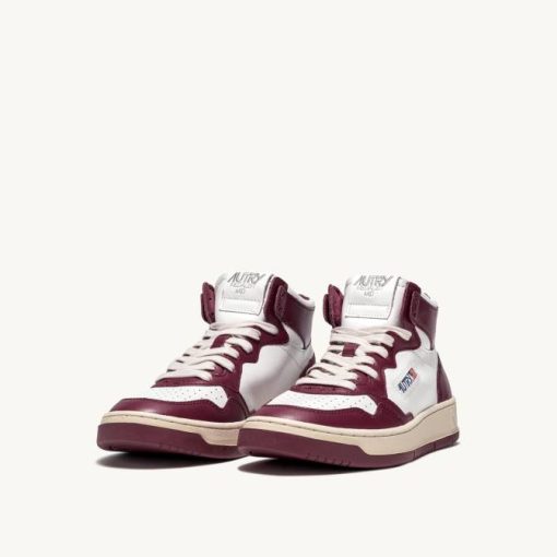 homens V68H37 Autry tênis mid medalist em couro e camurça branco preto