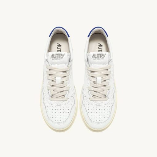 homens V68H4 Autry tênis baixo medalhista em couro branco e azul príncipe