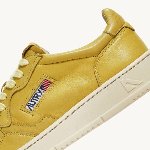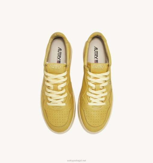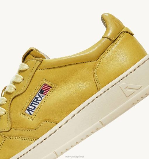 homens V68H41 Autry tênis baixo medalhista em pele de cabra macia amarelo íris