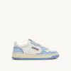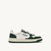 homens V68H48 Autry tênis baixo bicolor medalhista em pele de cabra macia e lona desfiada branco e manga