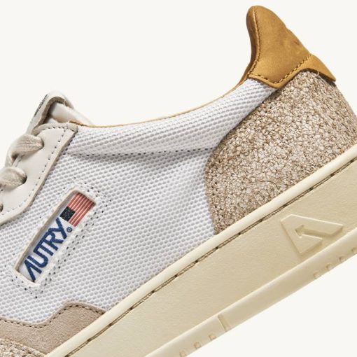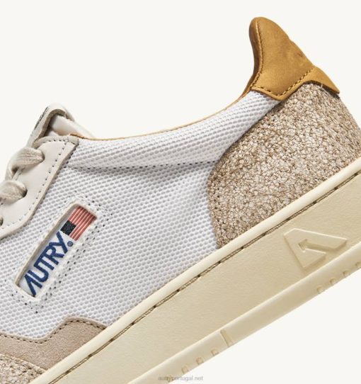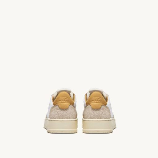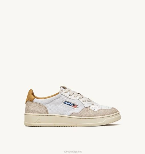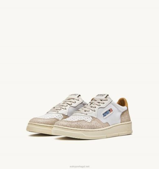 homens V68H53 Autry tênis baixo medalhista em couro de cabra macio com efeito dragão e nobuck crepitante branco