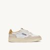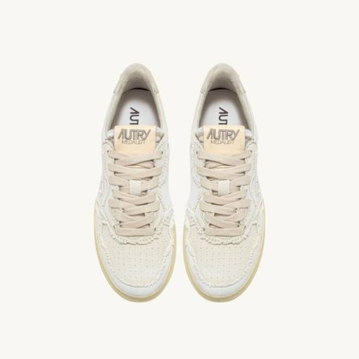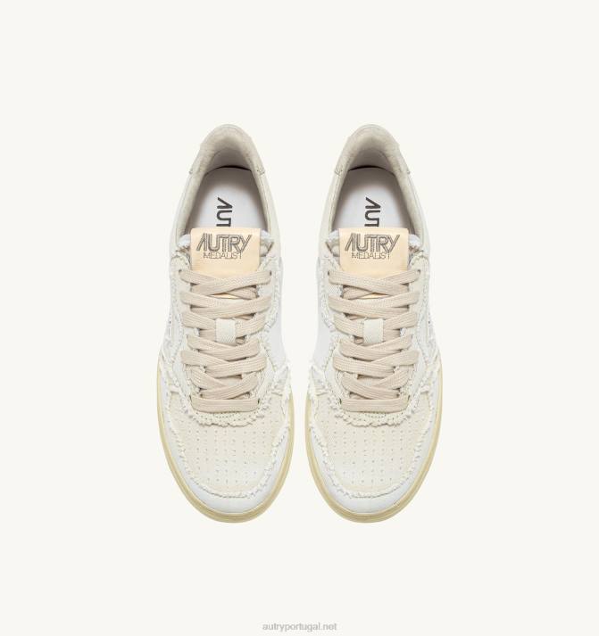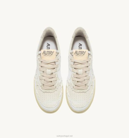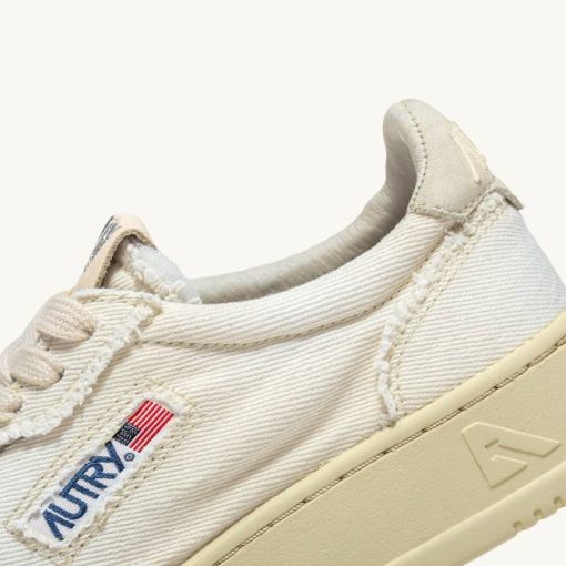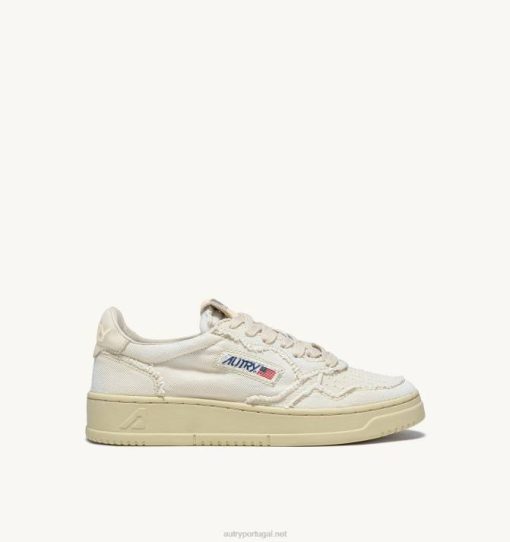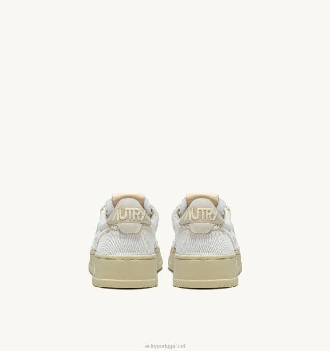 homens V68H54 Autry tênis baixo medalhista em denim branco marfim