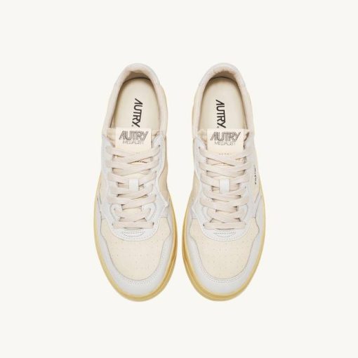 homens V68H57 Autry tênis baixo medalhista em couro e lona branco