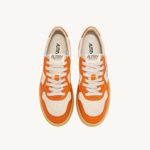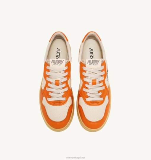 homens V68H60 Autry tênis baixo medalhista em couro e lona branco e laranja