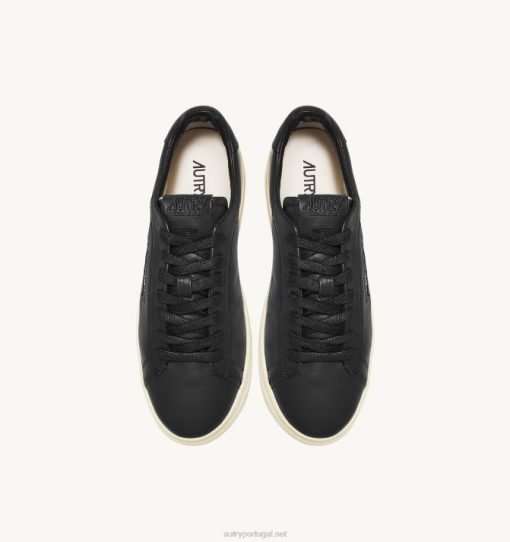 homens V68H76 Autry tênis baixo dallas em pele de cabra macia preta