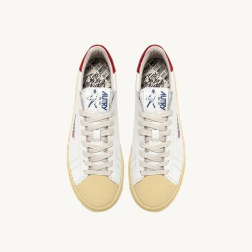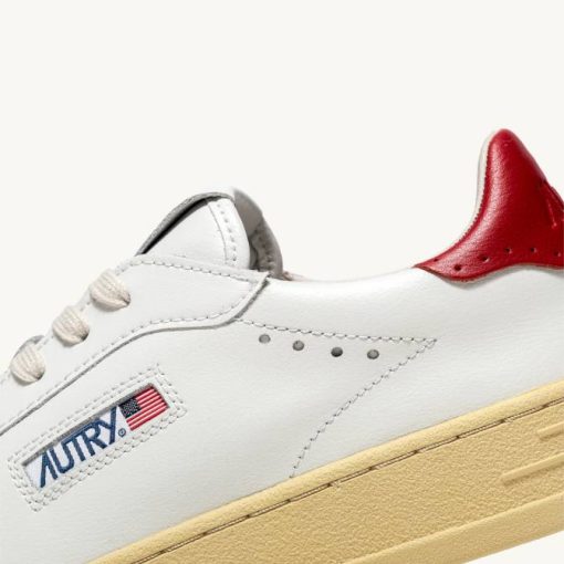 homens V68H88 Autry tênis baixo bob lutz em couro branco e vermelho
