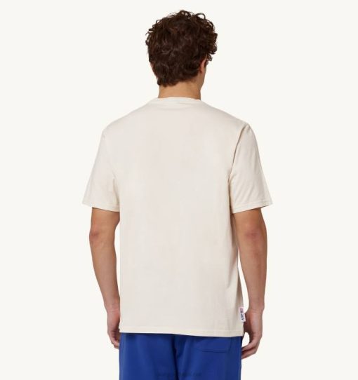 t-shirt de gola redonda em algodão especificações: remendo do logótipo da gola com nervuras no peito. etiqueta da marca no lado ajuste relaxado. composição: 100% algodão