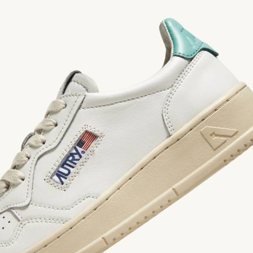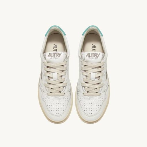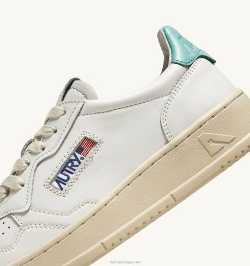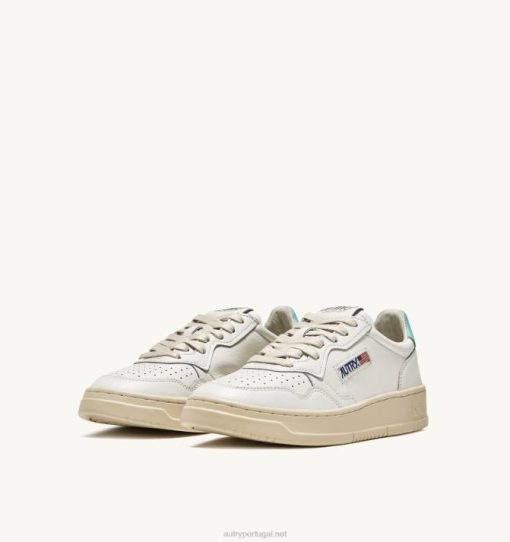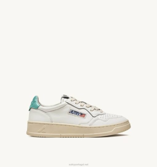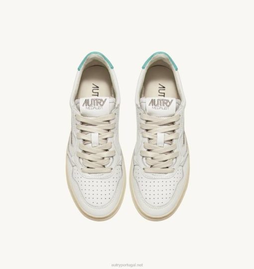 mulheres V68H186 Autry tênis baixo medalhista em couro branco e turquesa
