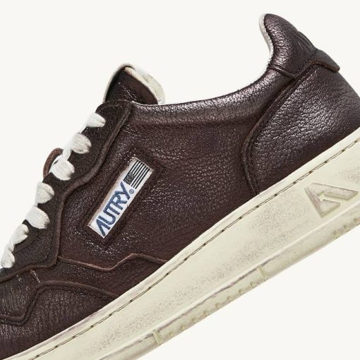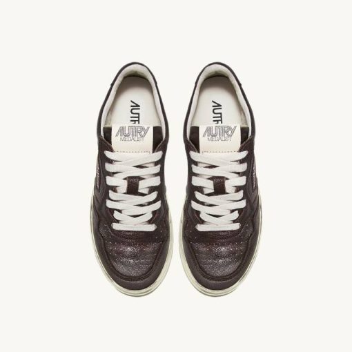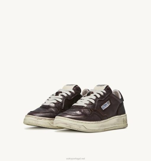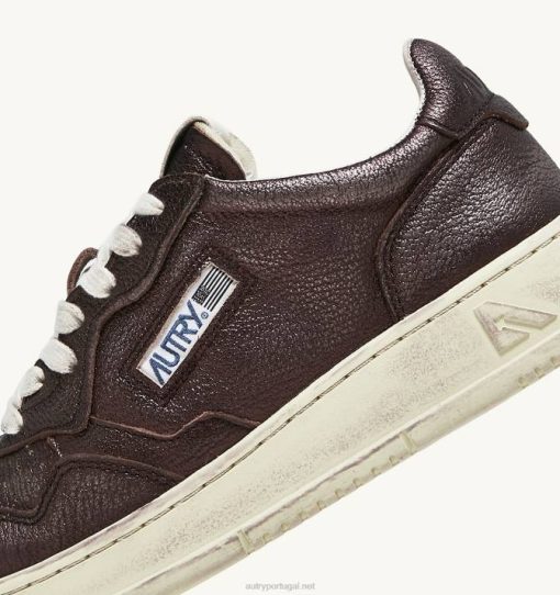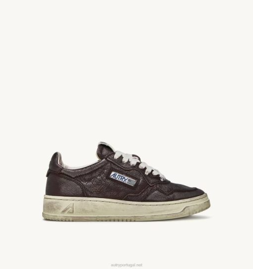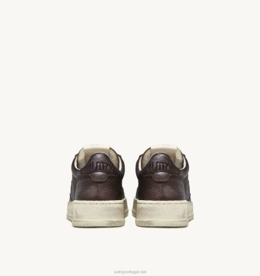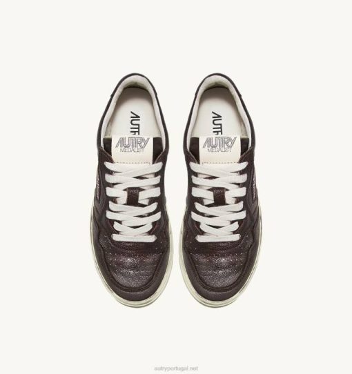 mulheres V68H198 Autry tênis baixo medalhista em pele de cabra laminada marrom ébano