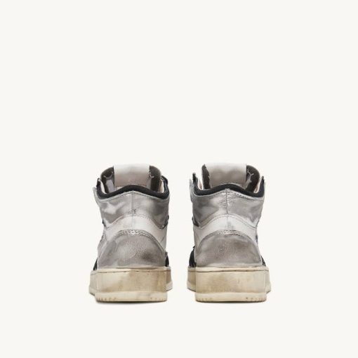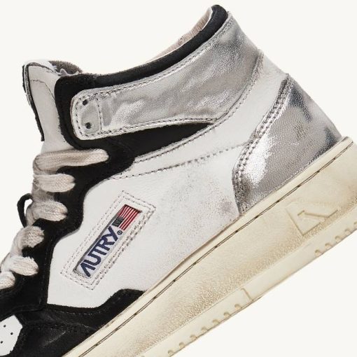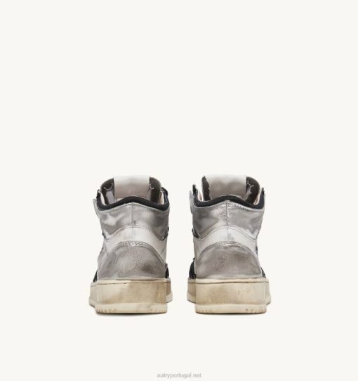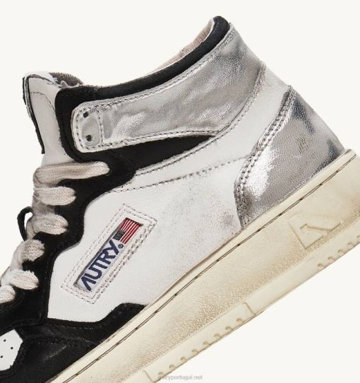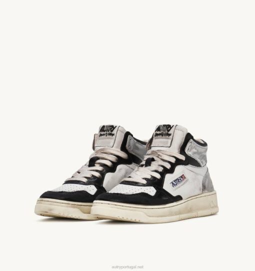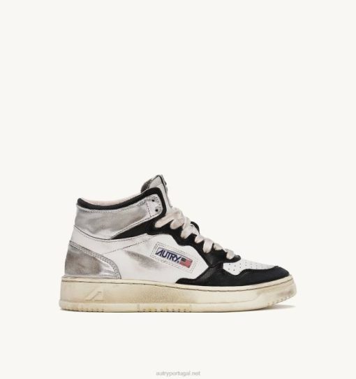 mulheres V68H204 Autry tênis mid super vintage em couro branco preto e prata