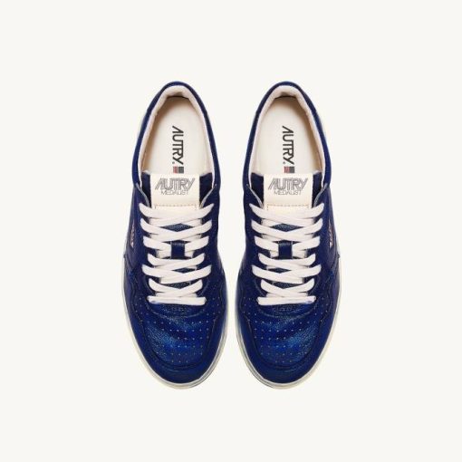 mulheres V68H208 Autry tênis mid medalist em pele de cabra laminada azul