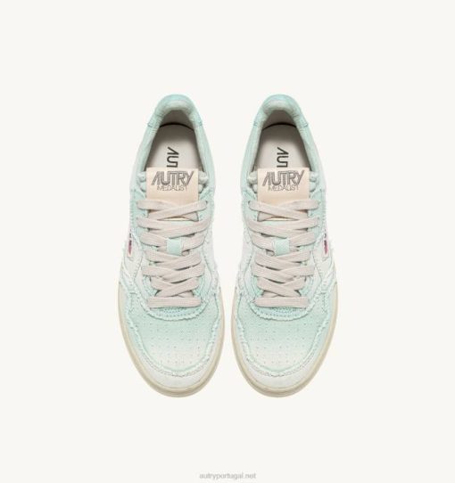 estilo atemporal: o medalhista autry é inspirado no design vintage dos anos 80, reinterpretado em uma chave moderna. um design distinto feito único pela parte superior em denim cor de água salgada e o logotipo icônico em relevo em um patch traseiro na mesma cor. Tênis de cano baixo estilo vintage dos anos 80 para mulheres. Especificações: Cabedal de jeans cor de água salgada, bico perfurado para melhor respirabilidade. Cadarços planos de algodão. Etiqueta tonal costurada em uma língua têxtil. Gola de tornozelo acolchoada. Remendo icônico de cor de água salgada nas costas com logotipo em relevo. Forro em couro e algodão felpudo. Palmilha alta de 2 cm em couro . sola de borracha a combinar com a cor do logótipo. altura da sola: 2,5-3,5 cm. Bolsa para sapatos incluída.