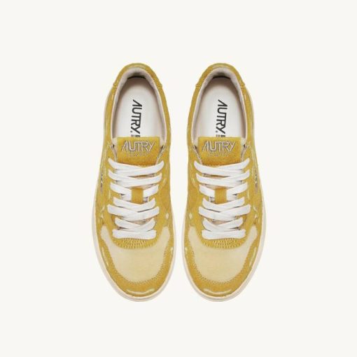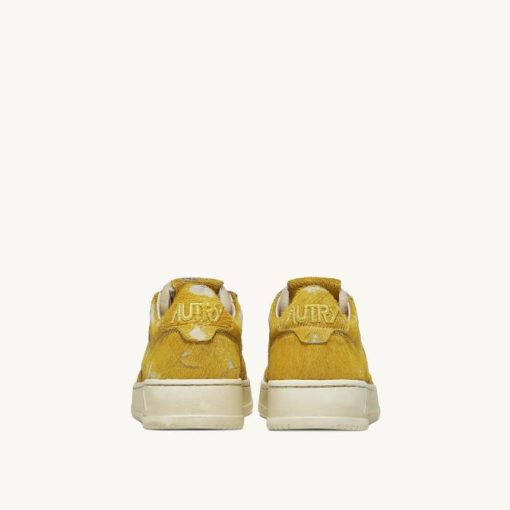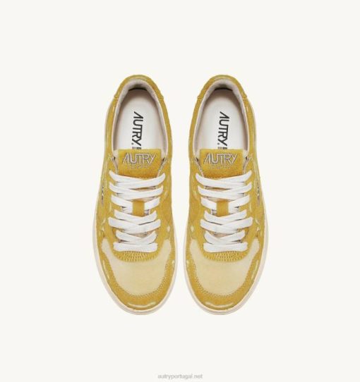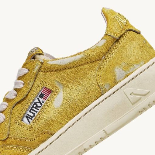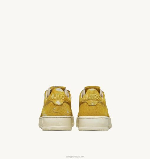 mulheres V68H221 Autry tênis baixo medalhista em pele de pônei amarelo