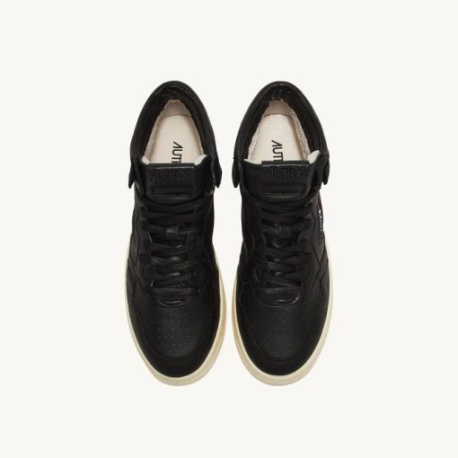 mulheres V68H227 Autry tênis mid medalist em pele de cabra macia preta