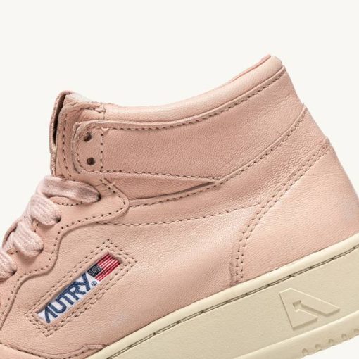 mulheres V68H228 Autry tênis mid medalist em pele de cabra macia pêssego