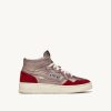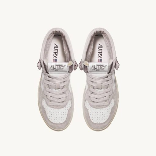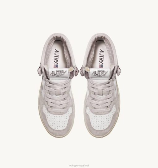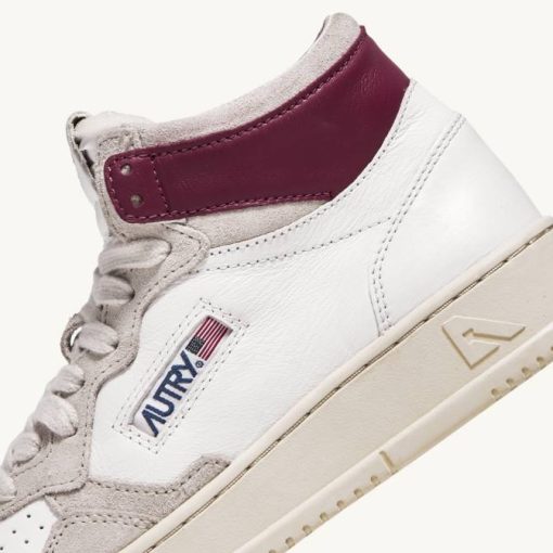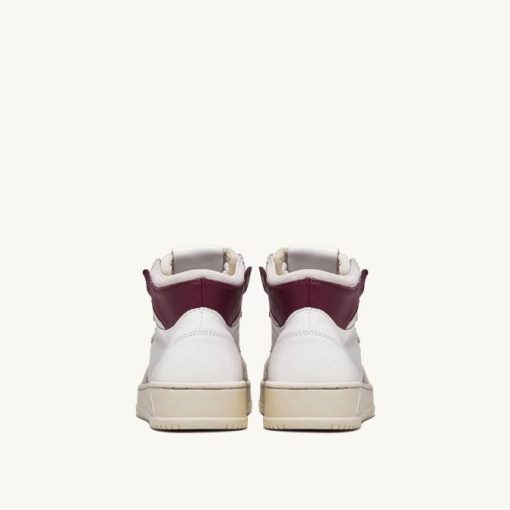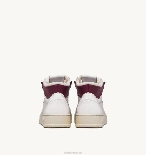 mulheres V68H233 Autry tênis mid medalist em pele de cabra branca e bordô e camurça