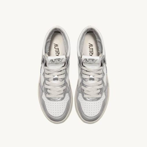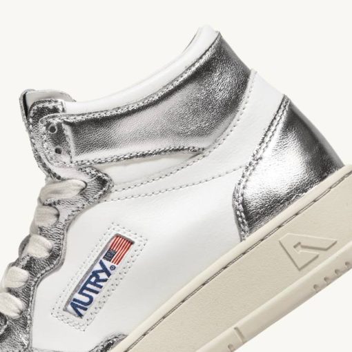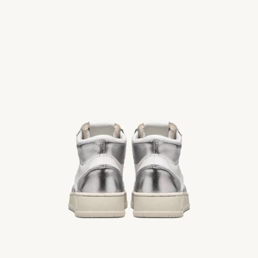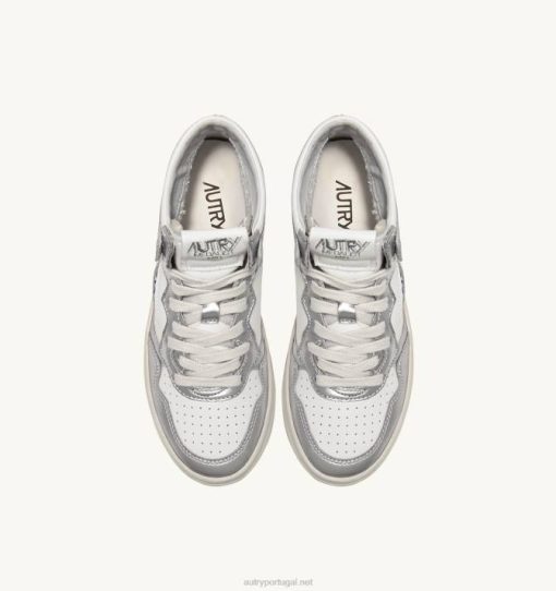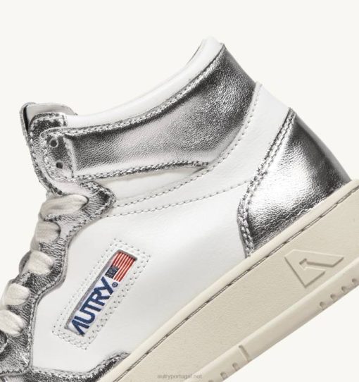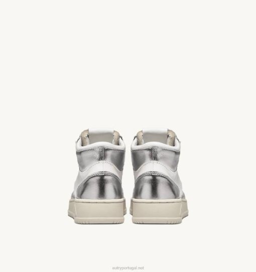 mulheres V68H238 Autry tênis mid medalist bicolor em couro branco e prata