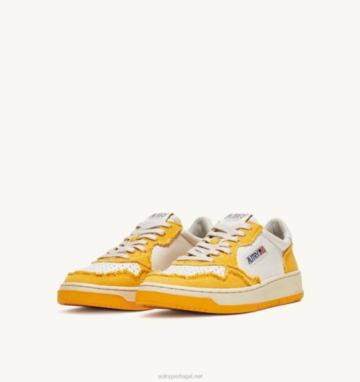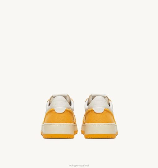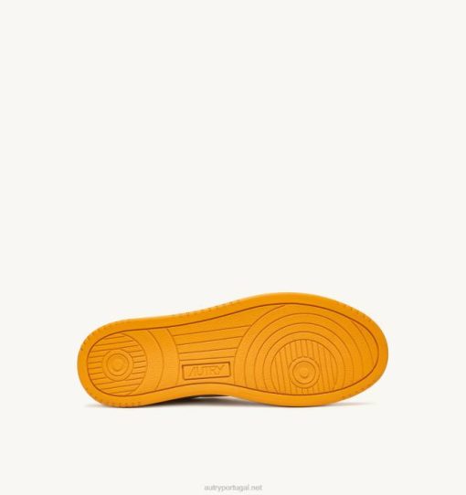 estilo atemporal: o medalhista autry é inspirado no design vintage dos anos 80, reinterpretado em uma chave moderna. um design distinto feito único pela parte superior em pele de cabra macia e lona desgastada cor de manga com o logotipo icônico em relevo em um patch branco nas costas. Tênis de cano baixo estilo vintage dos anos 80 para mulheres. especificações: cabedal em pele de cabra branca macia e lona desfiada cor de manga biqueira perfurada para melhor respirabilidade. cadarços planos de algodão. etiqueta tonal costurada em uma língua têxtil. gola acolchoada no tornozelo. icônico patch branco nas costas com logotipo em relevo. couro e forro de algodão felpudo. 2 cm- palmilha alta levantada em couro. sola de borracha a combinar com a cor do logótipo. altura da sola: 2,5-3,5 cm. Bolsa para sapatos incluída.