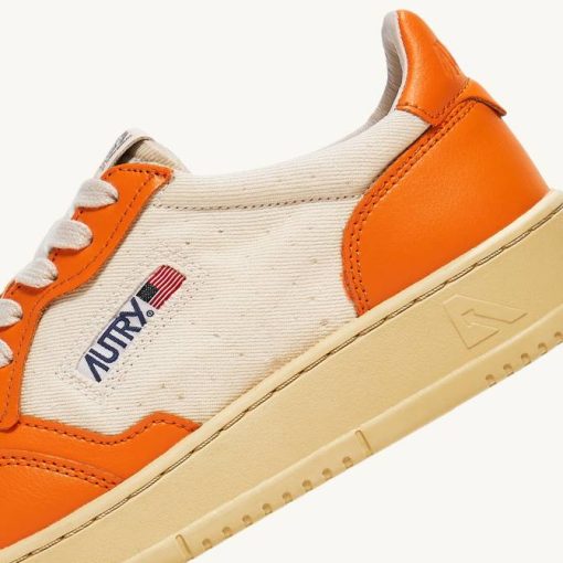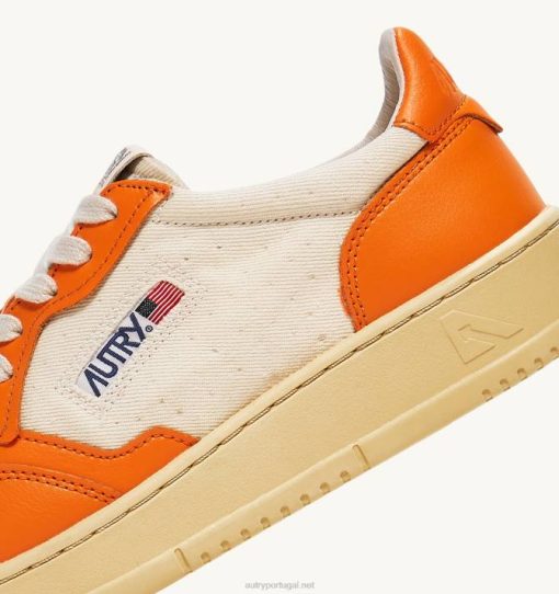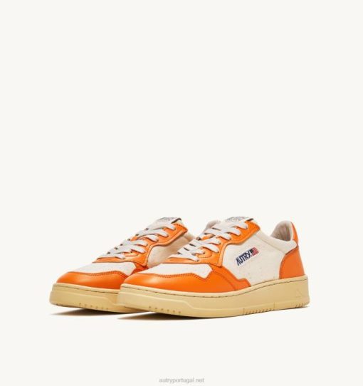 mulheres V68H245 Autry tênis baixo medalhista em couro e lona branco e laranja