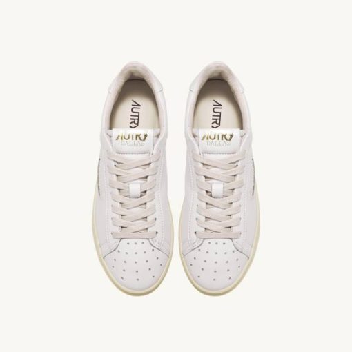 mulheres V68H252 Autry tênis baixo dallas em couro e estampa de foil branco e platina