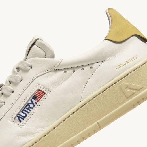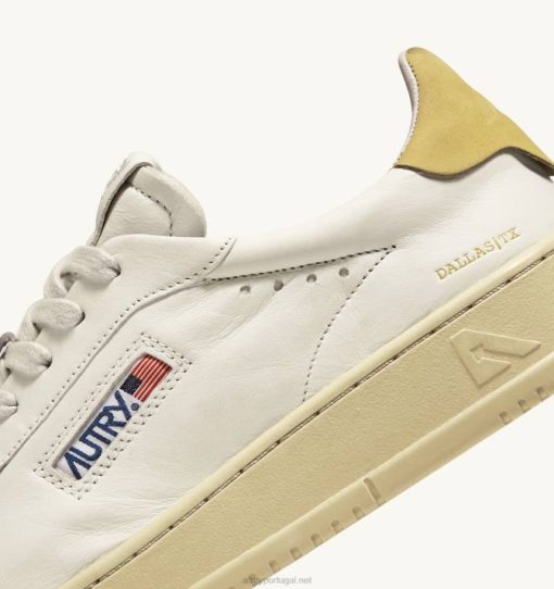 simplicidade e versatilidade marcadas por um estilo distinto. autry dallas é caracterizada por um design clássico e autêntico, para se exibir em qualquer ocasião. Cabedal macio em pele de cabra branca, letras Dallas Tx e patch amarelo nas costas com logotipo. Tênis cano baixo estilo vintage dos anos 80 para mulheres. especificações: parte superior de couro branco de design limpo com costuras expostas. biqueira lisa. cadarços planos de algodão. língua têxtil com etiqueta tonal e enchimento de espuma. gola acolchoada no tornozelo. patch de cor icônica combinada com logotipo em relevo. couro e forro de algodão felpudo. 2 cm de altura palmilha levantada em couro. sola de borracha a combinar com a cor do logótipo. altura da sola: 2,5-3,5 cm. Bolsa para sapatos incluída.
