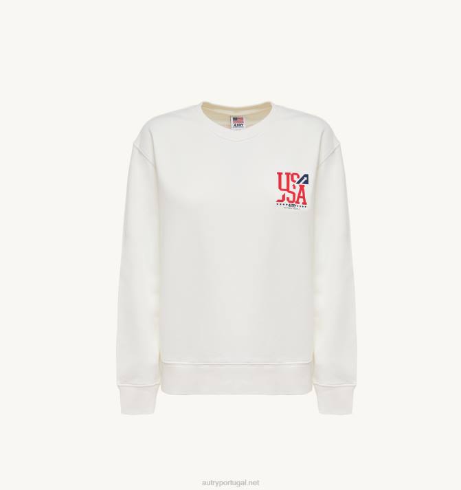 mulheres V68H281 Autry moletom com logo icônico decote careca branco