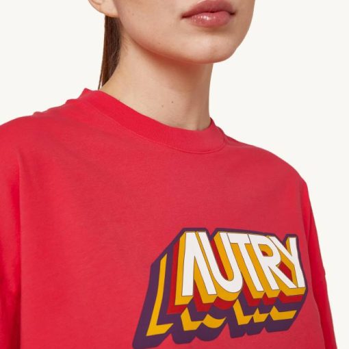 mulheres V68H282 Autry camiseta vermelha com logo aeróbico